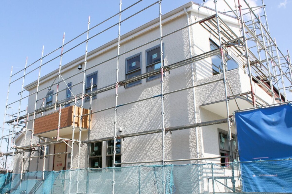 足場を解体し、施工完了です。組むときよりも美しい状態で引き渡しできるよう、丁寧に解体していきます。足場の解体をしたら、工事が完了となる場合がほとんどです。